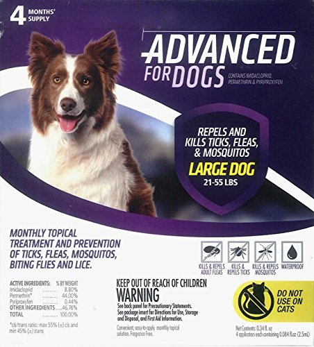 Flea control for dogs, 21-55 lbs; 4 month supply; this convenient and easy to apply monthly topical kills fleas through contact. Not to be used on dogs under 7 weeks of age or weighing less than 5 lbs. Not for use on humans